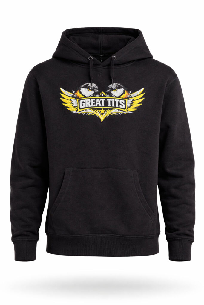 Den här svarta hoodien med broderat Great Tits-motiv är för dig som gillar smart humor, tydlig attityd och riktigt bra kvalitet.